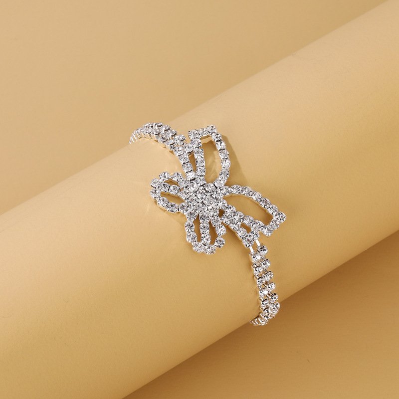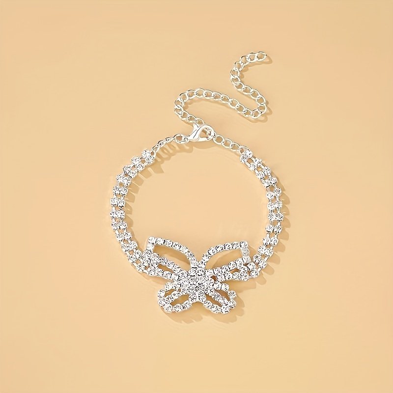 2pcs Butterfly Full Rhinestone Decor Bracelet + Anklet Set, Alloy Sparkling Hollow Butterfly Charm Bracelet And Anklet Set For Women Beach Party Wearing