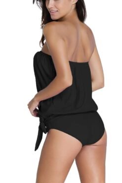 Features: Material :82%Nylon+18%Spandex,Two pieces sporty tankini swimsuit swimwear,With padded,none steel,hollow out,lace,strapless neckline, Polka Dot/Solid,Including a layered cutout swim top and a tie-side swim bottom