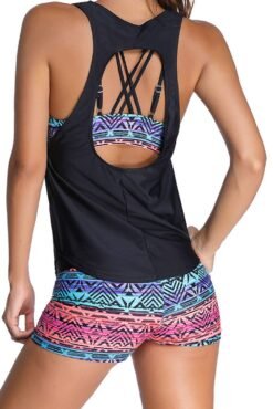 ♥Design:Women’s Plus Size 3 Piece Versatile Designs, Racerback Style Top, Back Crisscross Straps Embellishment, Sexy Back Cutout,Bikini lying under a tankini top looks fashionable and could better protect you from sunshine hurt.